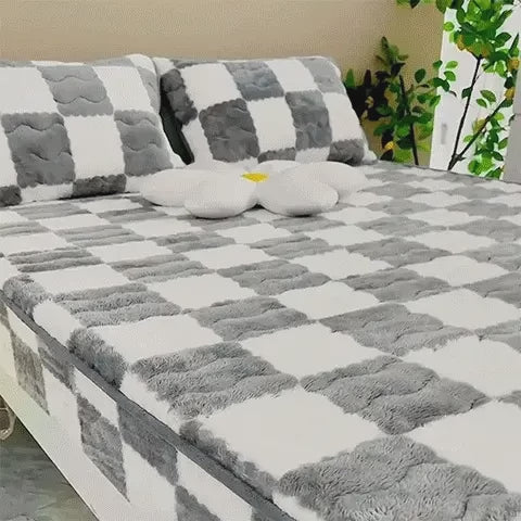 Revitalize your bedroom space with our luxurious yet practical Milk Velvet Checkered Mattress Cover, ideal for contemporary, pet-loving homes.