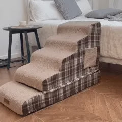 Creadas con cariño para acompañar los momentos cotidianos que compartes con tu mascota, las escaleras extraíbles para mascotas de felpa a cuadros con esponja de alta densidad ofrecen una forma suave y cómoda para que tu peludo amigo llegue a sus rincones favoritos. Ya sea acurrucándose a tu lado en el sofá o subiéndose a la cama para acurrucarse, estas escaleras brindan comodidad, seguridad y una cálida sensación de hogar.