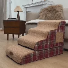 - Estilo a cuadros acogedor: Envueltas en tela a cuadros clásica, estas escaleras aportan un toque de encanto atemporal a su hogar, combinándose maravillosamente con su espacio y ofreciendo a su mascota un lugar suave para trepar, descansar y sentirse a gusto.