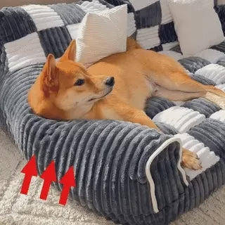 - Confort ultime : Les carrés de matière douce et la mousse dense s'associent pour créer un espace confortable qui améliore le sommeil de votre chien. Avec son dossier offrant soutien et sécurité, ce lit devient un sanctuaire pour que votre animal puisse se détendre et se déstresser.