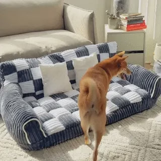Canapé-lit pour chien extra large avec support orthopédique en échiquier vintage - Canapé King